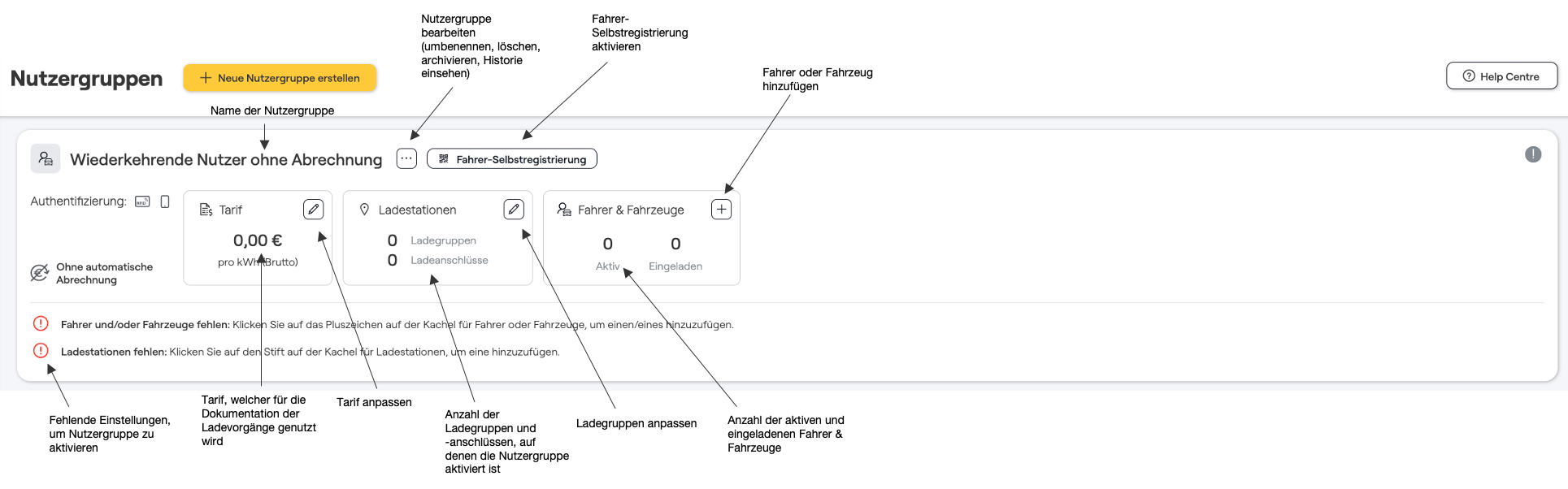 Um die automatische Abrechnung zu nutzen, müssen Sie zunächst ein Zahlungskonto einrichten. Weitere Informationen zur Einrichtung Ihres Zahlungskontos finden Sie hier. - Nutzergruppe erstellen