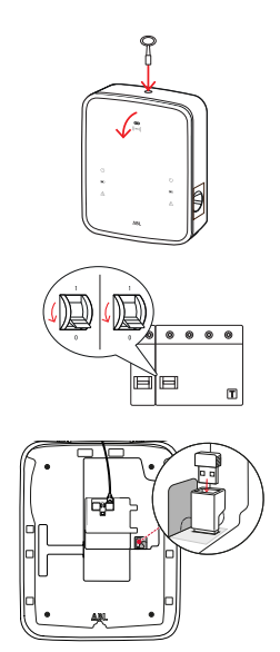 - Stecken Sie den LTE-Stick ab und wieder an. Der LTE-Stick befindet sich am USB-Port der Gehäusetür, welche beim Öffnen runter klappt.