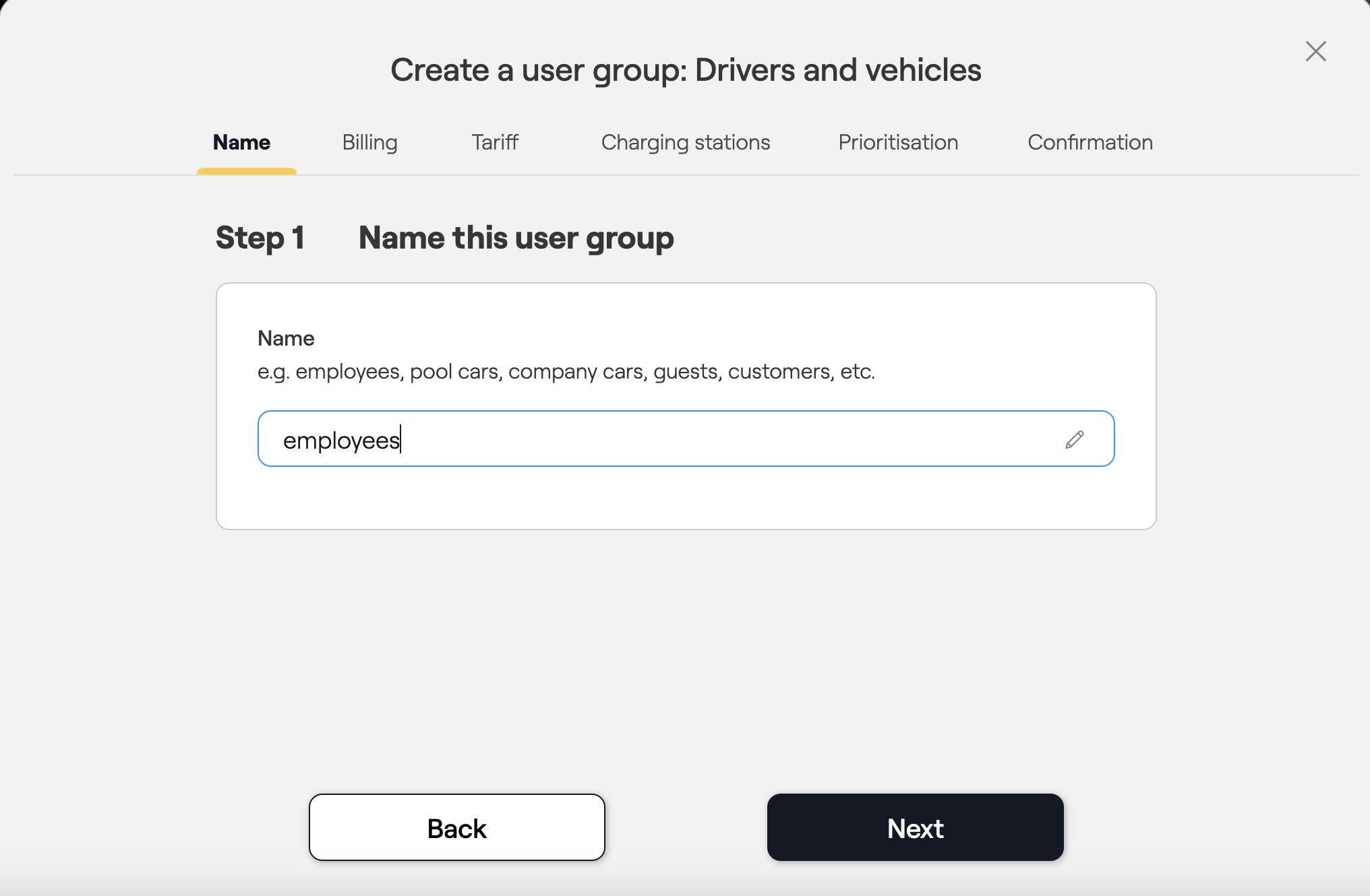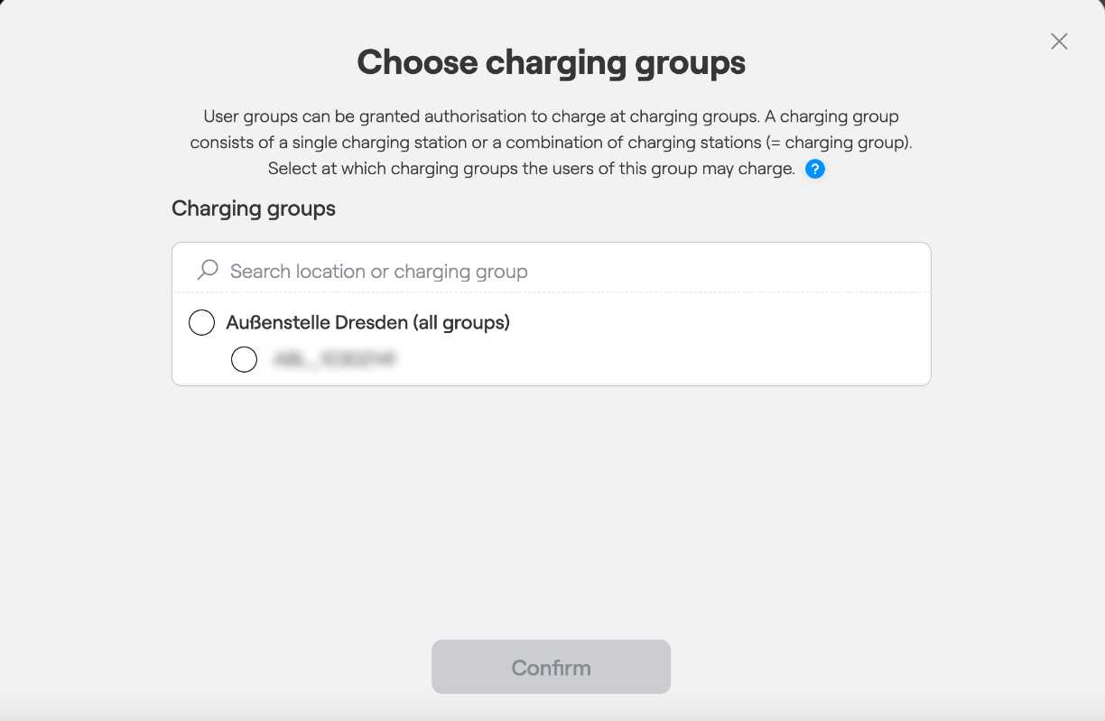 - Step 6: Review the user group details and click "Confirm" to activate the user group on the charging infrastructure.