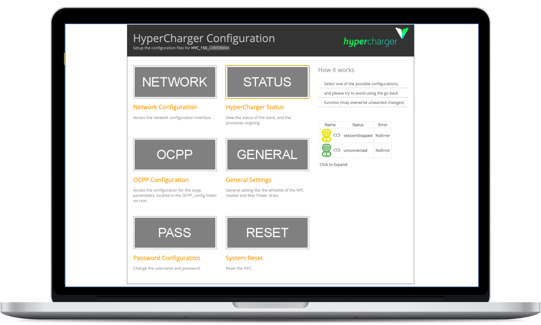 You will need a laptop to connect to the controller charging infrastructure via a RJ45 data cable - An active internet connection via Ethernet or WiFi to connect to the reev backend.