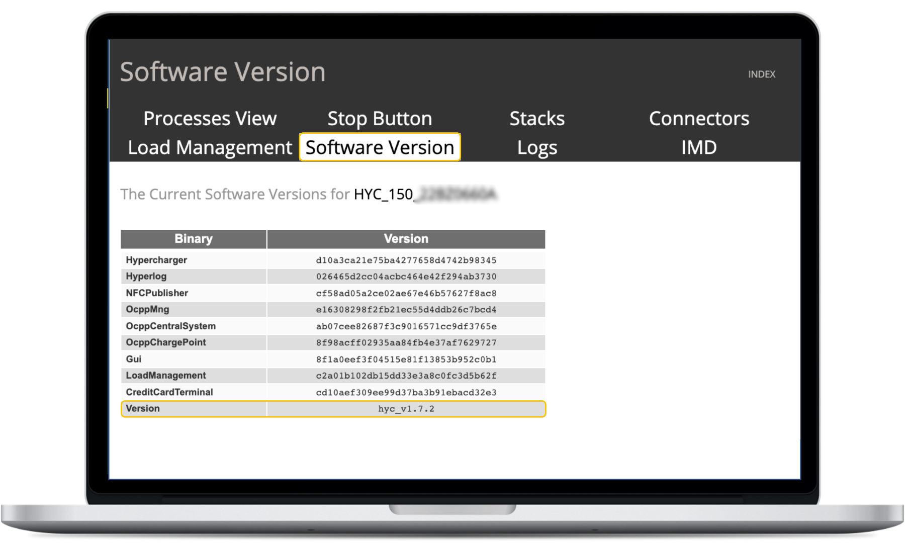 Before configuring the backend, please check under "HyperCharger Status" and "Software Version" whether the latest firmware version from Alpitronics has been installed (in the following screenshot, the latest version hyc_v1.6.7.1 (as of 09.11.2022) is highlighted in yellow).