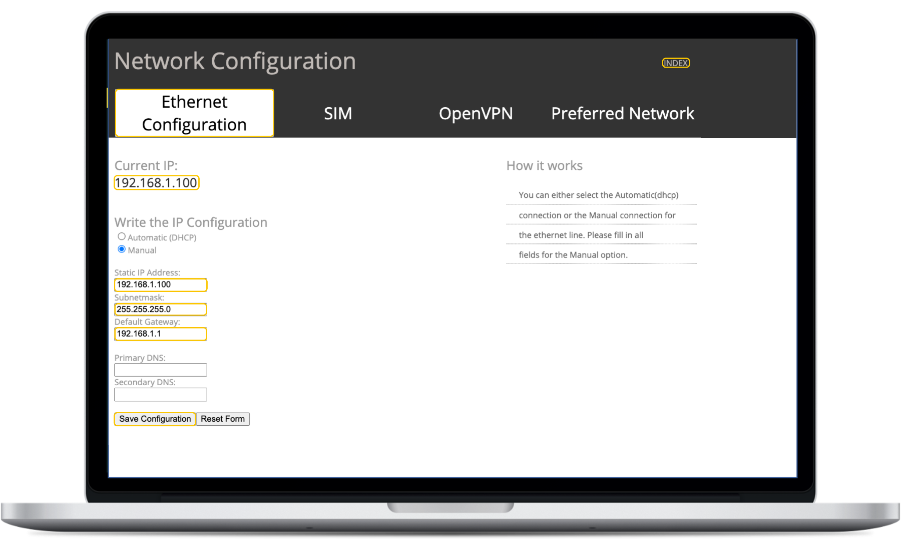 The fields "Primary DNS" and "Seconday DNS" fields have to stay empty, to enable the charging station to connect to the backend.