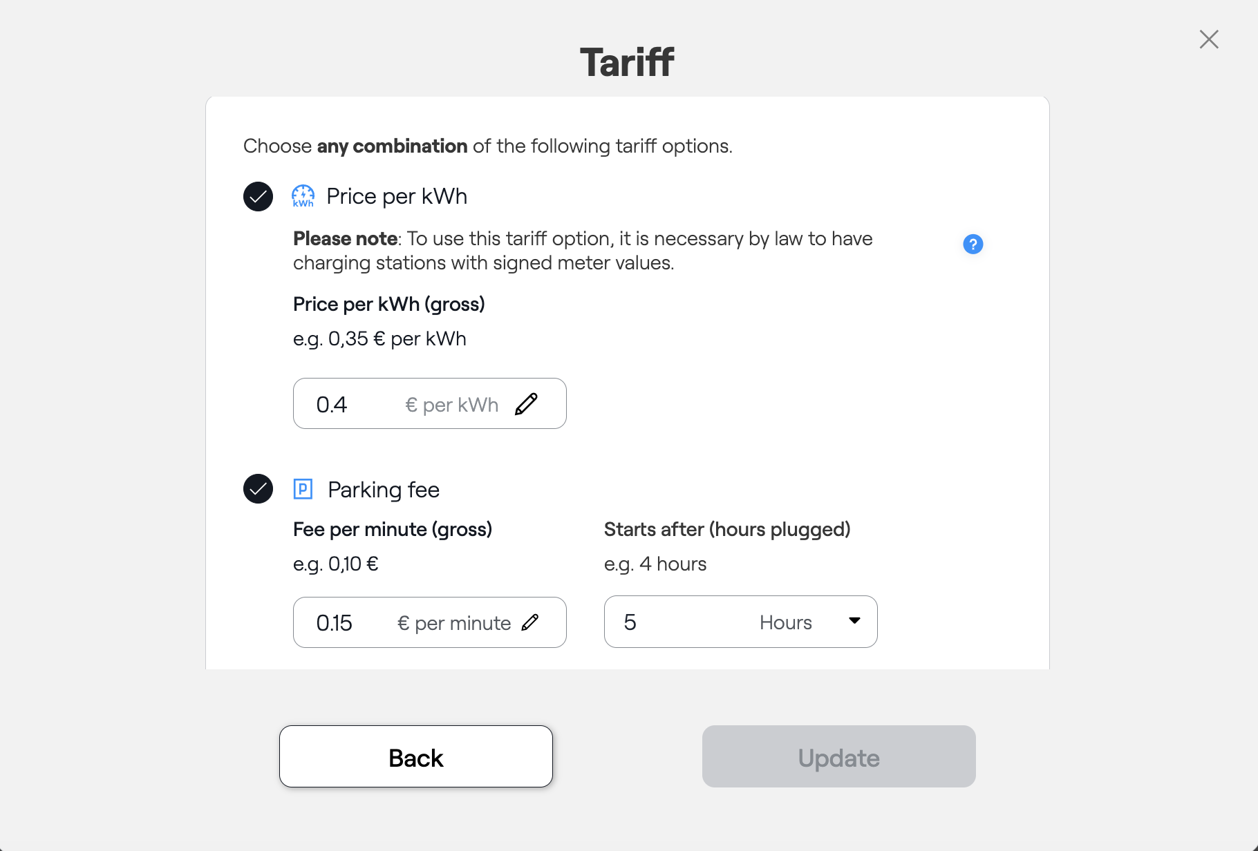 This parking fee is independent of what the driver pays. Many eMobility service providers have been charging fees to their drivers for years. The parking fee is now (at least partially) passed on to you as the charging station operator.