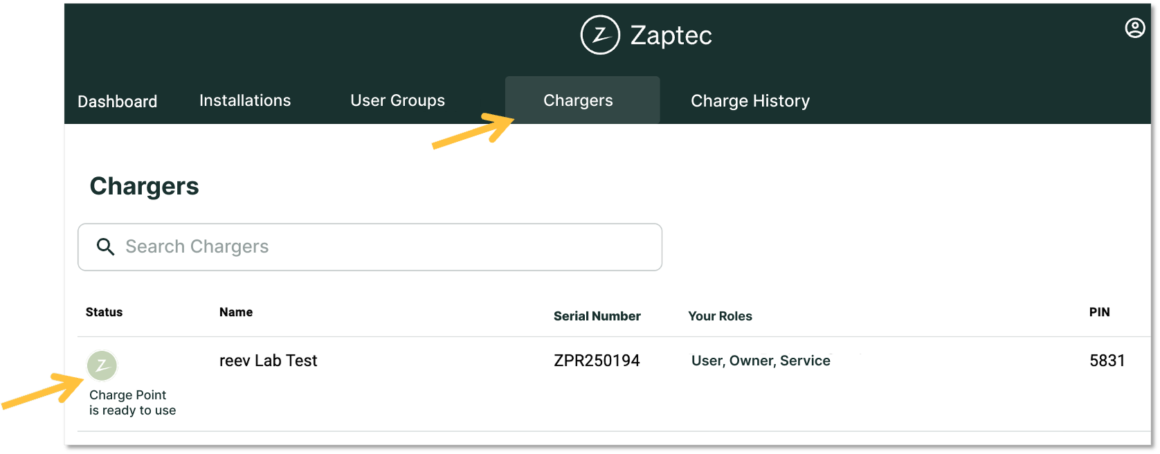 1. Select the desired charging station in the Zaptec portal under "Charging stations".