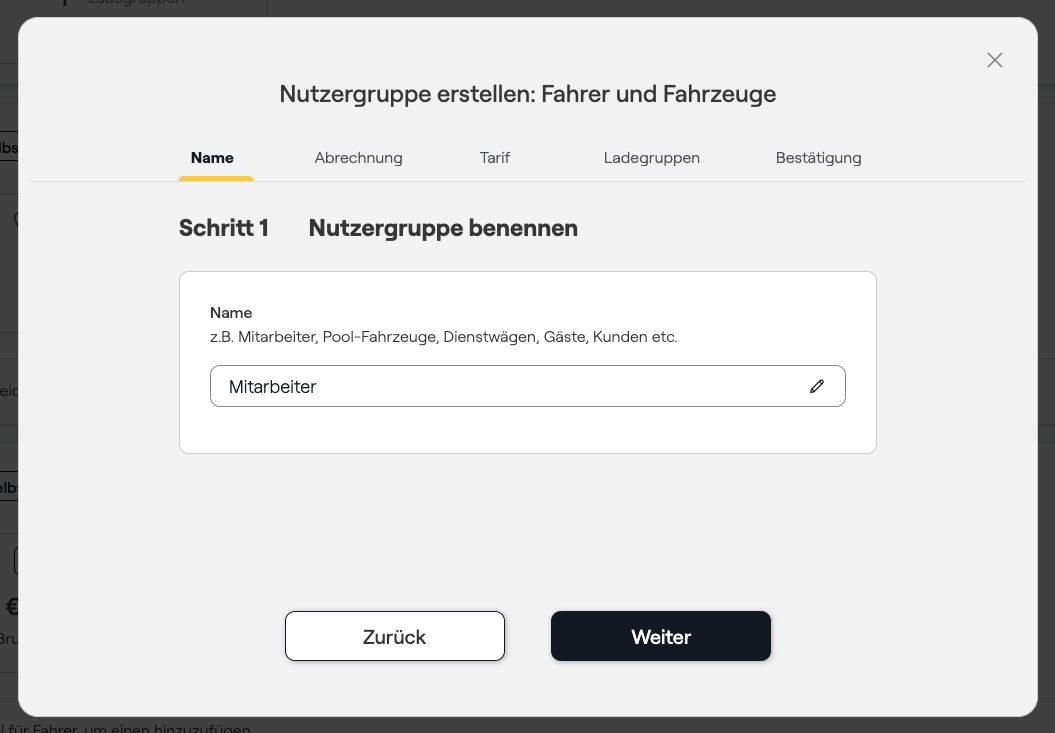- Stap 5: Controleer de informatie over de gebruikersgroep en klik ten slotte op Bevestigen om de gebruikersgroep bij de laadinfrastructuur te activeren..