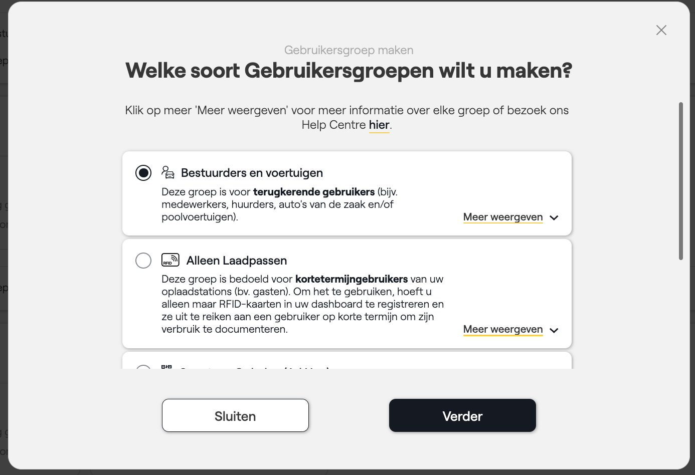 - Stap 4: Instellen, of de gebruikersgroep al dan niet op de gehele laadinfrastructuur moet worden geactiveerd